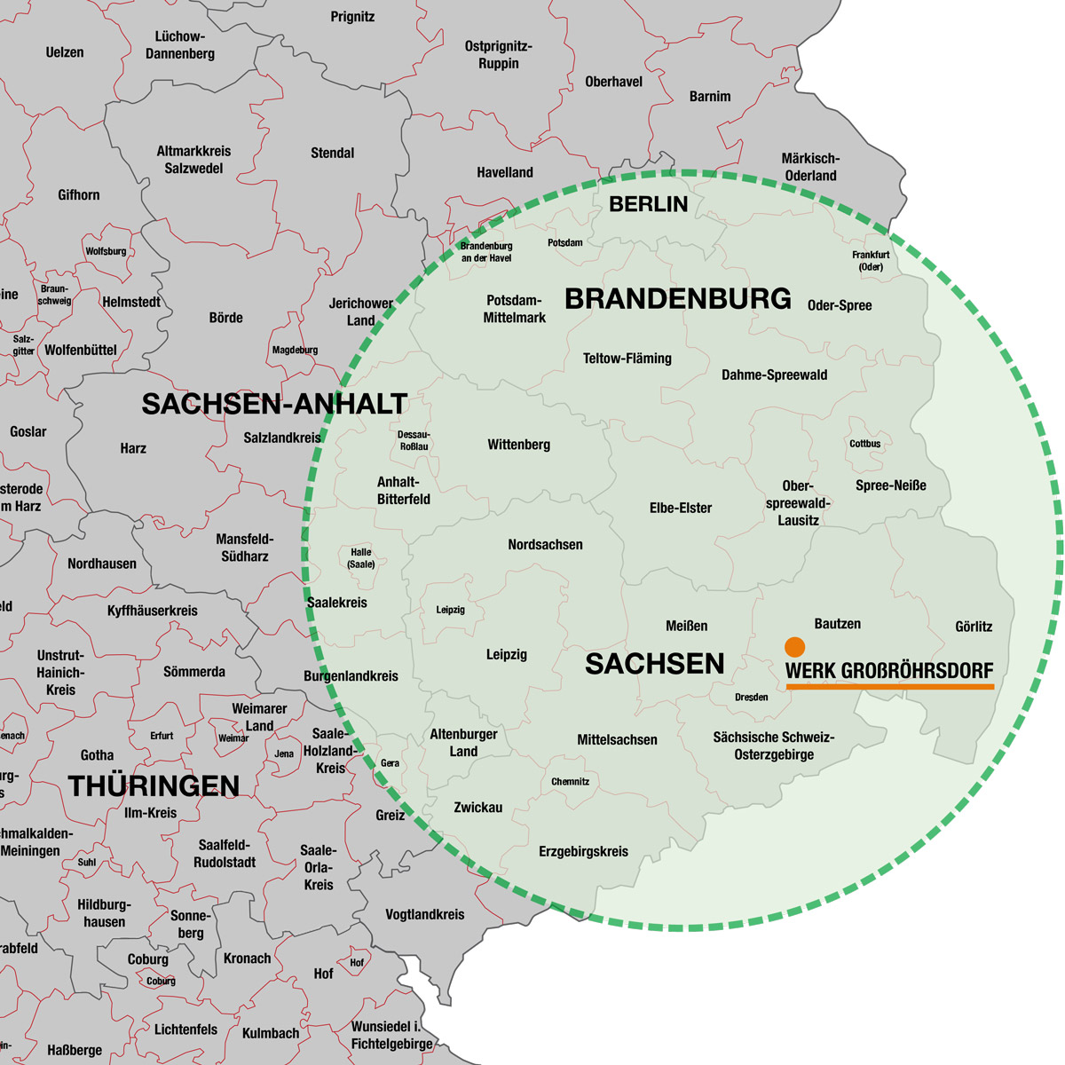 Unsere Liefergebiete liegen in den Bundesländern Sachsen (Lausitz), Sachsen-Anhalt, Thüringen, Brandenburg und Berlin.